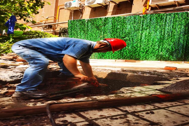 在這(zhe)支(zhi)水(shui)務藍隊伍里有這樣(yang)一(yi)位衛士——管(guan)道維修(xiu)工張國彪,他(ta)頭頂烈日,腳踏熱土,始終(zhong)堅守城區(qu)管道(dao)巡檢第一線。此(ci)刻的他(ta)正(zheng)蹲在破裂水管旁,藍(lan)色工(gong)裝(zhuang)早已(yi)被汗水浸透(tou),緊緊貼(tie)在背(bei)上。他抹了把臉,任憑(ping)汗珠混著泥水滑落,手里的扳(ban)手卻一刻沒停(ting),這已是他(ta)今天處理的第二個搶修點。